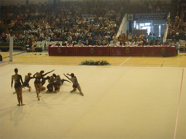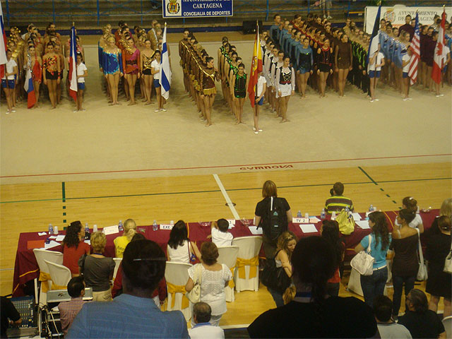 Para finalizar el campeonato y tras el desfile de los equipos, se procedió ayer a la clausura del evento, presidida por Johann Tumala Jautuneu, presidenta de la Federación Internacional de Gimnasia Estética de Grupo, Alonso Gómez López, Concejal de Deportes del Ayuntamiento de Cartagena y Berta Verja, Presidenta de la Asociación Española de Gimnasia Estética de Grupo.