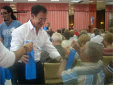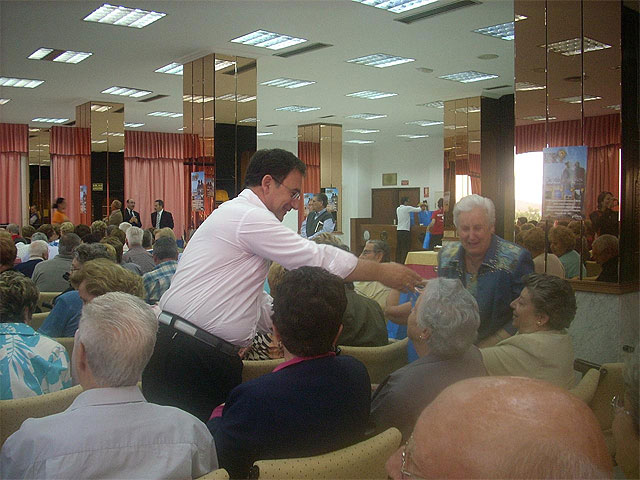 El consejero de Política Social, Mujer e Inmigración, Joaquín Bascuñana, visitó hoy en La Manga del Mar Menor a los 190 participantes del primer turno de Turismo Senior 2008, junto a la directora general de Personas Mayores, Paloma Recio.