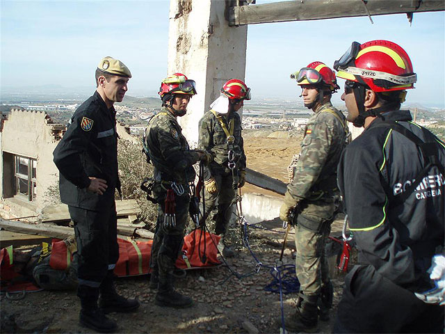 Efectivos de la Unidad Militar de Emergencias (UME) con sede en Valencia, y cuyas misiones consisten en intervenir en grandes catástrofes naturales como incendios forestales, inundaciones, terremotos... realizaron la pasada semana, durante los días 9 al 12 de marzo, ejercicios de rescate y salvamento de personas en estructuras colapsadas en terrenos de la comarca de Cartagena, elegidos previamente para la realización de estos ejercicios.