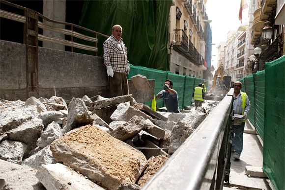 Los ecos de los últimos cohetes de las procesiones han sido sustituidos esta misma mañana del lunes por el de las máquinas y los operarios que han retomado las obras de de sustitución del pavimento de la calle Mayor, y mejora de la red de alcantarillado y pavimento en Bodegones y Comedias.