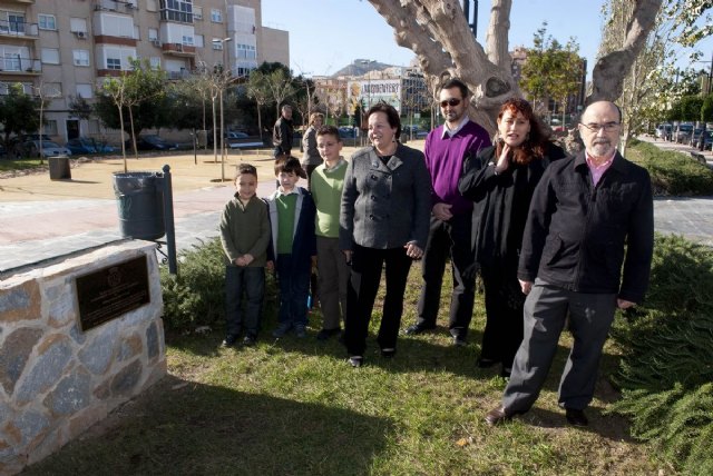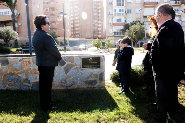 La placa en honor a Jorge Juan se encuentra en uno de los bancos del jardín ubicado en la calle del mismo nombre, frente al Conservatorio de Música de Cartagena.