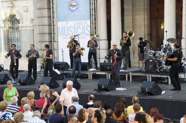 El Festival La Mar de Músicas trajo ayer a la Plaza del Ayuntamiento al grupo rumano Mahala Raï Banda, que ofreció en nuestra ciudad, como estreno nacional, su único concierto en España.