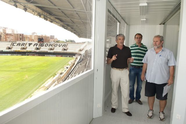 La concejalía de Deportes ha acometido durante los meses de julio y agosto más de una veintena de obras en el estadio municipal, como la instalación de 140 focos, las mejoras complemetarias de megafonía y aseos, así como la numeración de etiquetado de las butacas Mañana finalizan las obras que, durante los meses de julio y agosto, se han acometido en el estadio municipal Cartagonova y que han contado con un presupuesto aproximado de 800.000 euros, financiados a través del plan E y con la colaboración económica de la concejalía de Deportes del Ayuntamiento de Cartagena.