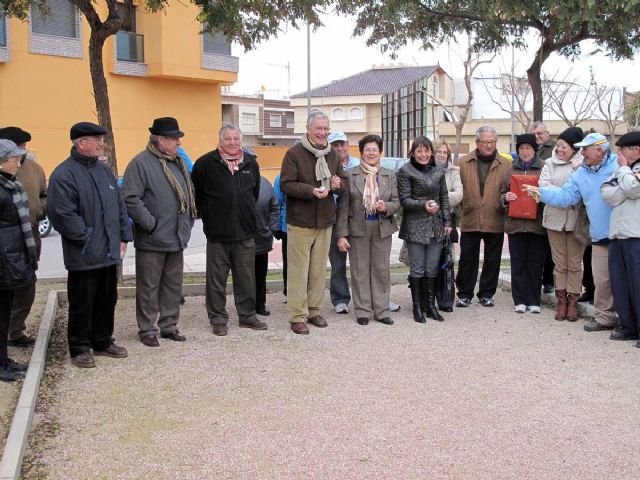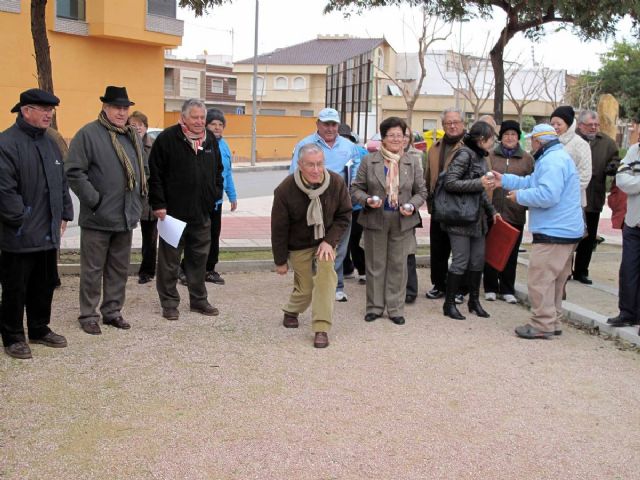 El concejal de Atención Social, Antonio Calderón, fue el encargado de realizar el saque de honor en el primer partido del III Campeonato Municipal de Petanca para Mayores, que se celebró el lunes en el campo del barrio de la Concepción.