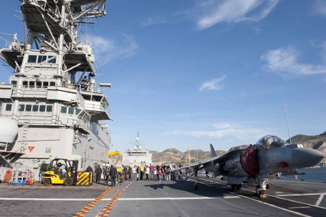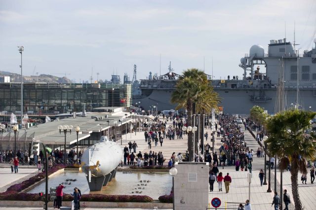 Alrededor de 2.800 marinos han pasado por Cartagena en estos dos días, a bordo de algunas de las naves españolas más importantes, como son el portaaviones Príncipe de Asturias, las fragatas Ãlvaro de Bazán, Victoria y Navarra, el petrolero Marqués de la Ensenada y el buque anfibio de mando Castilla.