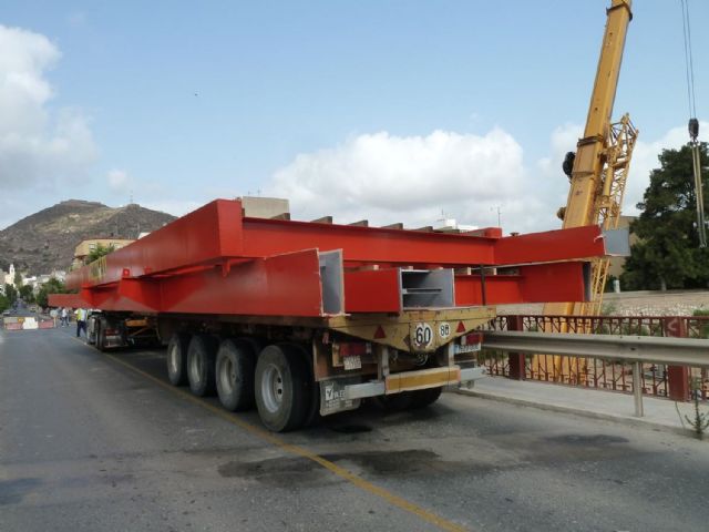 Las primeras piezas que forman parte de la pasarela del Barrio de la Concepción se han transportado esta mañana desde la empresa TAMAR en la Asomada, que ha fabricado las piezas, hasta la rambla de Benipila. El traslado ha comenzado a las ocho de la mañana recorriendo la F35 hacia el Polígono Industrial de Cabezo Beaza; siguiendo por la avenida Luxemburgo hacia la A 30, el Paseo de Alfonso XIII, Menéndez y Pelayo, hasta llegar al puente. En el recorrido se han ocupado los dos carriles, dado que las piezas alcanzan los cinco metros de ancho.