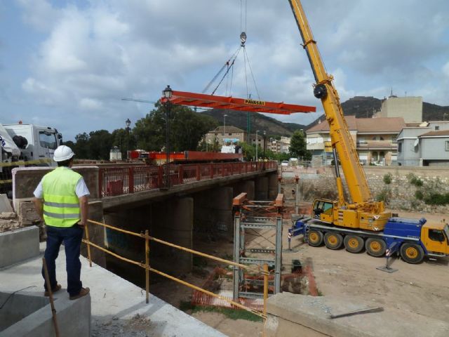A primera hora se ha cortado la circulación en el puente del Barrio de la Concepción para facilitar el trabajo de los operarios que han procedido a depositar las piezas, por medio de grúas, en el lecho de la rambla de Benipila. La operación ha finalizado al mediodía para restablecer el tráfico y despejar el puente de cara a la salida del personal de Navantia y el Arsenal Militar.