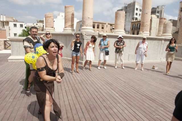 La actividad, que se realizó ayer el jueves 18 de agosto, comenzó con una visita guiada por el Museo del Teatro Romano y posteriormente un divertido juego de Risoterapia subidos a la escena del Teatro.