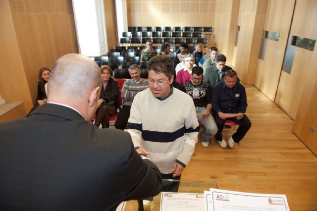Finaliza la IV Edición del programa Barrios ADLE. El concejal de Empleo, Diego Ortega, y el director de la Agencia de Desarrollo Local y Empleo (ADLE), Francisco García-Valenzuela, han entregado esta mañana los diplomas a los treinta desempleados que han participado en esta edición realizada en Los Dolores y en Barrio Peral.