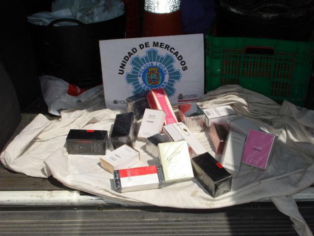 La Policía Local ha decomisado en diversas intervenciones realizadas los meses de mayo y junio, numeroso material audiovisual, entre los que se encontraban 812 CDs y DVDs, así como objetos de marcas de prestigio falsificadas: 25 estuches de perfume, 100 gafas de sol, 30 slips y 50 polos, además de relojes y otras prendas de vestir.