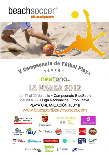La V edición del Campeonato Bluesport de Fútbol Playa está a la vuelta de la esquina. Ya está todo listo para el evento deportivo que se realizará en la playa de la Urbanización Tesy II, en La Manga del Mar Menor entre los días 17 y 22 de julio.