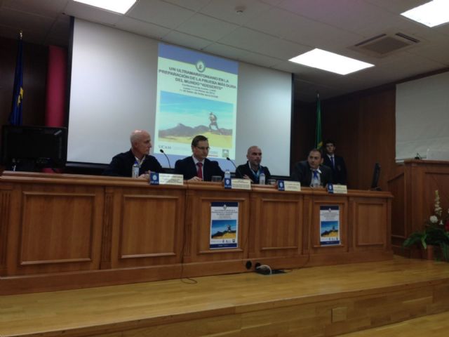 Ayer lunes, por la mañana, se presentó en la UCAM el proyecto 4DESERTS2014 que el deportista cartagenero Andrés Lledó llevará a adelante, con colaboración entro otras entidades de la concejalía de Deportes del Ayuntamiento de Cartagena. La charla se enmarcó dentro de la actividades del programa ADE de esta misma concejalía, bajo el título de UN MARATONIANO EN LA PREPARACIÃ"N DE LA PRUEBA MÃS DURA DEL MUNDO 4DESERTS .