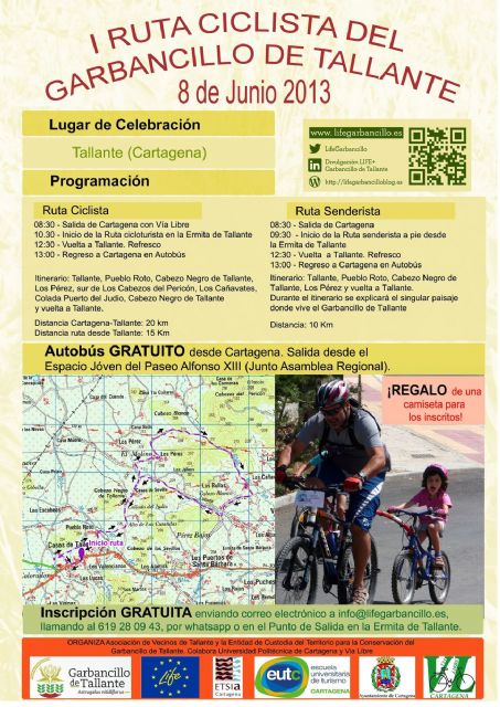 Se estima que unas 200 personas participarán en esta actividad, que se va a celebrar entre las 8,00 y las 13,00 horas, con salidas desde Cartagena y desde Tallante.