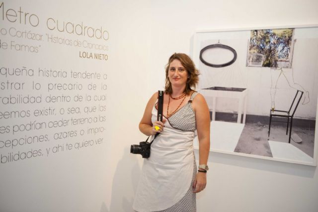 La artista cartagenera considera el metro cuadrado, título de su exposición, como el punto de partida de sus historias que se entremezclan con el halo de magia que envuelve a sus obras. La muestra se puede visitar hasta el 14 de diciembre en el Palacio de Molina Manzana de oro, Autorretrato, El mirón, La cometa, La barbacoa, Caldero cartagenero, La perra luna...,y así hasta un total de 49 obras que son las que componen la exposición de Lola Nieto, Metro Cuadrado, compuesta de fotografías manipuladas y pintura reflectante, y que desde el pasado 4 de octubre puede ser visitada en el Palacio Molina de Cartagena.