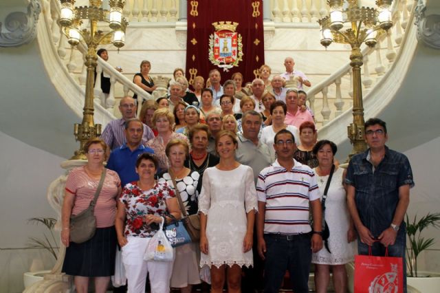 Medio centenar de turistas procedentes de una Asociación Turística de Oviedo, se encuentran hoy de visita en Cartagena, donde están recorriendo los principales yacimientos y edificios de interés de la ciudad, como el Palacio Consistorial, donde han sido recibidos por al concejala de Turismo, Carolina Palazón.