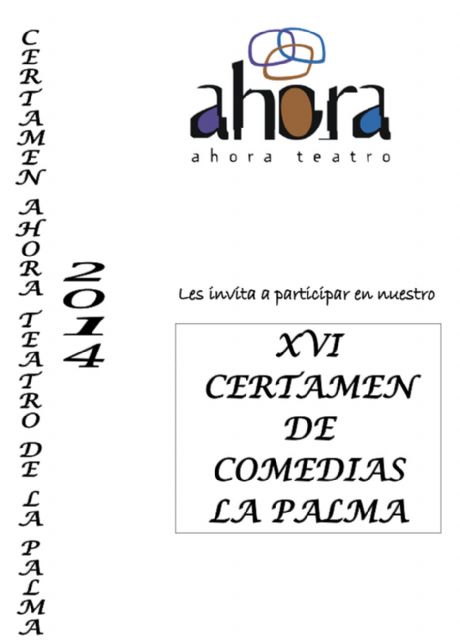 Ahora Teatro ha convocado el XVI Certamen de Comedias de La Palma, evento cultural ya tradicional en la diputación cartagenera, que se celebra en febrero de 2014 y cuenta con la colaboración del Ayuntamiento de Cartagena.