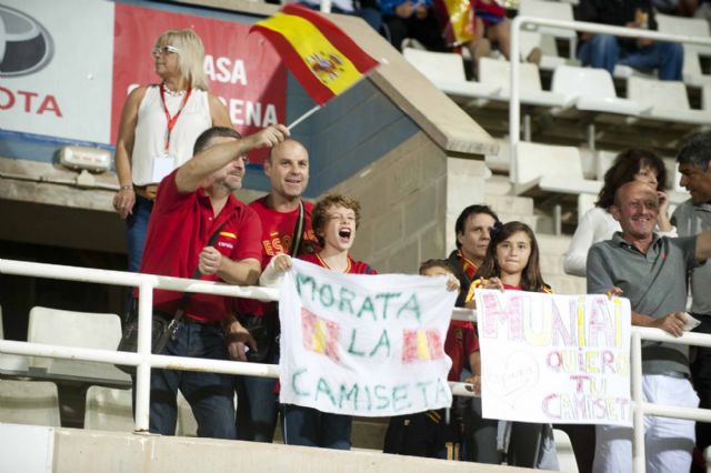 No cabía ni un alfiler anoche en las gradas del Estadio Municipal Cartagonova que registró un lleno absoluto de aficionados. En un ambiente familiar y festivo se disputó este encuentro clasificatorio para el Europeo de 2015 y que enfrentó a la selección española Sub-21 y al combinado húngaro.