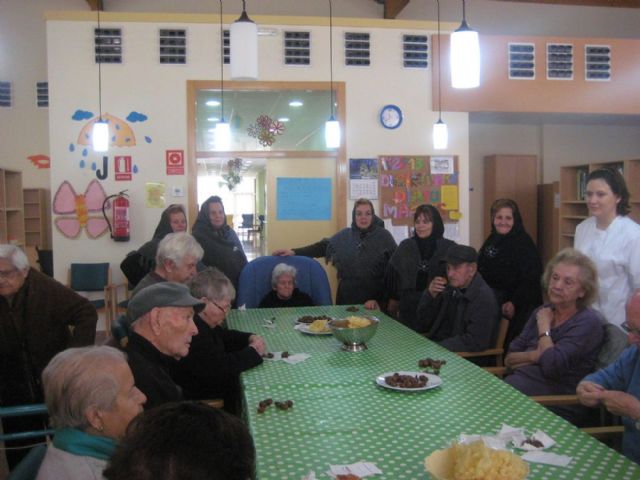 Con grandes dosis de humor, las castañeras han contagiado su alegría a los mayores de El Algar, igual que han hecho anteriormente con los del Centro de Día de Los Dolores o los del Polígono Santa Ana.