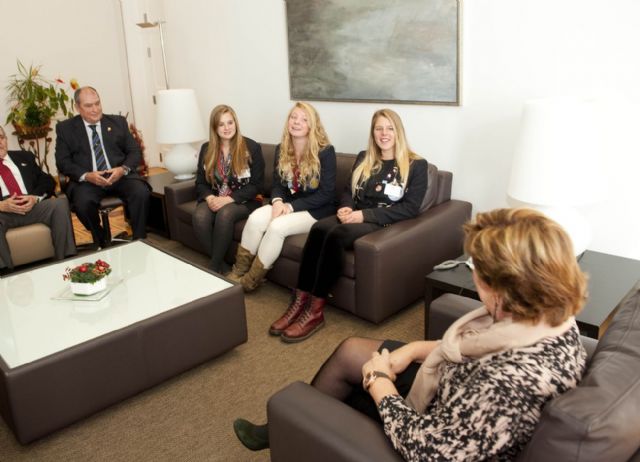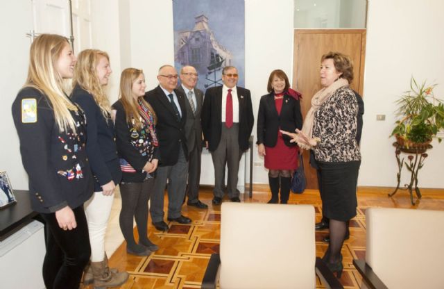 Este año han sido tres los jóvenes cartageneros que han realizado el intercambio a otros países, como Estados Unidos, el favorito de estos estudiantes. Pauline Sherry (Colorado) Chloe Jankosky (California) Jamie Herman (Minesota) son las tres americanas que se encuentran en Cartagena con el Programa de Rotary y que este viernes han podido visitar a la alcaldesa, a quien le han contado su experiencia durante estos meses. Lo que más les llama la atención de Cartagena es su historia reflejada en los restos romanos, explicaba el presidente del Club Rotary de Cartagena Teatro Romano, Bartolomé Ríos, que también ha asistido a este encuentro.