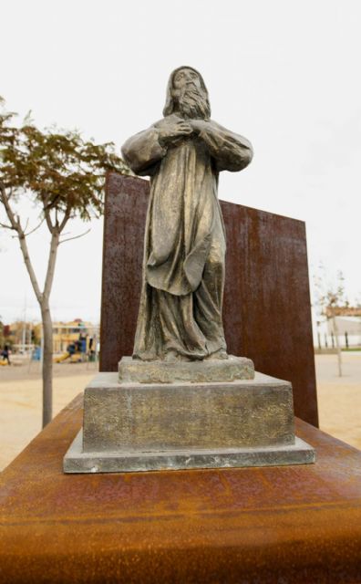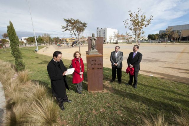Una estatua de San Ginés de la Jara preside desde el pasado sábado el parque que se bautizó con su mismo nombre en El Ensanche, junto al Barrio Virgen de la Caridad.