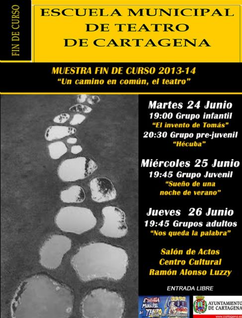 La Escuela Municipal de Teatro de Cartagena realizará durante esta semana su habitual muestra de fin de curso en el Centro Cultural Ramón Alonso Luzzy, con la puesta en escena de obras por parte de los diferentes grupos: infantil, prejuvenil, juvenil y adultos.