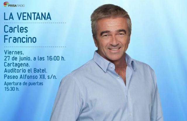 Carles Francino estará en Cartagena para realizar cara al público un programa con las habituales secciones de los viernes: la tertulia de los cafeteros, la Unidad de Vigilancia de Isaías Lafuente, para reivindicar de forma divertida un correcto uso del lenguaje en la radio, y la sección de música con Benjamín Prado e Iñaki de la Torre, que prestará especial atención al festival La Mar de Músicas, que en esta edición cumple 30 años y contará con su director, Paco Martín, como invitado.