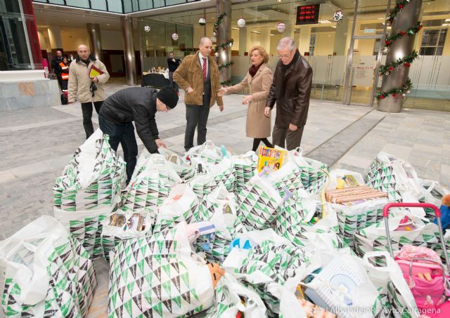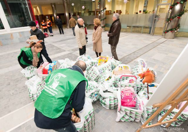 Empresas, organismos, clubes y particulares han aunado esfuerzos para conseguir apilar el mayor número posible de regalos. Entre ellos, la Armada ha llegado esta mañana con sus camiones repletos de regalos, hasta 1.300 juguetes han conseguido recopilar, acompañados de villancicos. El concejal de Atención Social, Antonio Calderón, no ha querido perderse la finalización de la campaña de recogida.