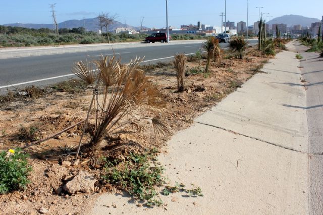 En cuanto a esta ausencia de control, MC quiere destacar que seguirá trabajando por Cartagena desde la oposición hasta el 23 de mayo, y José López pone como ejemplo la avenida Victor Beltrí "esa avenida le ha dado al Partido Popular para dos o tres anuncios, ha dicho que han plantado multitud de especies vegetales, que el sistema de riego es novedoso, etc., ¿y saben la verdad?, que una vez más han pagado una importante cantidad de dinero al contratista y, o no han visto el resultado o confían en que nadie vaya a verlo, por eso difundimos las fotografías, en ellas se ven las aceras rotas, la maleza creciendo y las palmeras secas y enfermas. El único abono que se ha echado allí es el que Barreiro le ha hecho a la contratista por la obra".