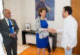 La embajadora de México, Roberta Lajous, se encuentra de visita en Cartagena con motivo de la escala del buque escuela mejicano, el Cuauhtémoc, y el alcalde de Cartagena, José López, junto a la vicealcaldesa, Ana Belén Castejón, y la concejala delegada de Turismo, Obdulia Gómez han recibido a la embajadora, al comandante del buque Pedro Mata y al cónsul horario en Murcia, Sebastián de la Peña Velasco.