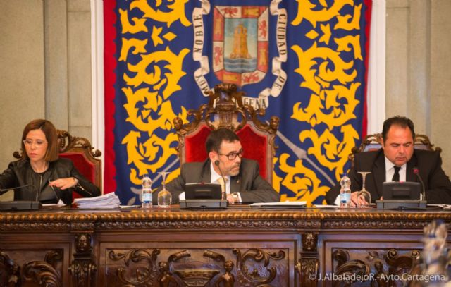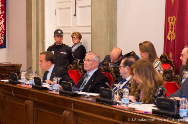 Esta es mi propuesta , que creo que debemos de trasladar entre todos a los Plenos y a cuantos actos públicos se realicen, los cartageneros no se merecen otra cosa.¿, ha dicho el alcalde, que ha pedido ayuda a todos para conseguirlo.Su intervención ha finalizado con un aplauso y la aprobación del resto de los grupos municipales, incluido Ciudadanos, cuyo portavoz, Manuel Padín, ha retirado su moción de reprobación presentada contra José López.ORDENANZAS FISCALES Y MEMORIA HISTÃ"RICAEl Pleno del Ayuntamiento ha aprobado definitivamente las ordenanzas fiscales de impuestos, tasas y precios públicos para el 2016, que supondrán una rebaja de un 10 por ciento del impuesto de vehículos de tracción mecánica y de un 15 por ciento de la de veladores que pagan los hosteleros. Igualmente contempla la posibilidad de un plan personalizado de pago por plazos del impuesto de bienes inmuebles. Este asunto ha contado con los votos favorables de PSOE, MC y Ciudadanos.Otros de los asuntos aprobados ha sido el informe de la Comisión y Grupo de Expertos para la Aplicación de la Ley de la Memoria Histórica. En él se proponen la retirada de bustos, monumentos y placas, así como de cambio de denominación de calles y plazas. En concreto, la retirada de los bustos y monumentos siguientes:Almirante Bastarreche (Ciudad)General López Pinto (Ciudad)IV Navarra (Ciudad)Yugo y Flechas (La Aljorra)Retirada de las placas siguientes:A los caídos (La Aljorra)Viviendas San Fulgencio (Ciudad)A José Antonio Primo de Rivera (La Aljorra)A la Disciplina. Franco (Museo de Artillería)Y el cambio de denominación de las calles y plazas siguientes:Pza. Almirante Bastarreche (ciudad)Pza. General López Pinto (ciudad)Calle Belchite (Barrio de Peral)Calle Brunete (Barrio de Peral)Calle José Antonio (Los Barreros)Calle General Muñoz Grandes (San Antón)Calle General Mola (Los Belones)Calle García Maroto (Los Belones)Calle General Martín Alonso (Santa Ana)Calle General Millán Astray (Santa Ana)Calle General Orgaz (Santa Ana)Calle General Saliquet (Santa Ana)Calle General Serrano Montaner (Santa Ana)Calle General Solchaga (Santa Ana)Calle General Varela (Santa Ana)Calle General Alonso Vega (Santa Ana)Calle General Cabanellas (El Albujón)Calle General Dávila (El Albujón)Calle General Fanjul (El Albujón)Calle General Moscardó (El Albujón)Calle Capitán Cortés (El Albujón)Calle Capitán Haya (El Albujón)Calle de los Caídos (El Albujón)Calle Hogar del Productor (Llano del Beal)Calle José Antonio (Llano del Beal)Calle Francisco Bernal (La Aljorra)Avda. Del Generalísimo (La Puebla)Avda. De José Antonio (La Puebla)A través de la página web del Ayuntamiento se habilitará un plazo de información para que los vecinos, entidades y organizaciones interesadas, puedan en el plazo de un mes, presentar alegaciones y sugerencias, respecto de la retirada y cambio de denominación de las calles afectadas.El acuerdo ha contado con los votos favorables del PSOE, MC y CTSSP y las abstenciones de PP y Ciudadanos.APROBACIÃ"N DE MOCIONESEn cuanto a las iniciativas de los grupos municipales, por unanimidad se han aprobado cuatro mociones conjuntas de todos los grupos en relación a violencia machista; de apoyo a la estrategia Cartagena 2020 para la solictud de fondos europeos; sobre activación del protocolo para menores transexuales, tras lo que se ha guardado un minuto de silencio en memoria a la víctima reciente de Barcelona; y de nombramiento de Francisco Franco, Luis Miguel Pérez Adán, José Sánchez Conesa y Juan Ignacio Ferrández como nuevos cronistas oficiales de la ciudad.Con la abstención del PP se ha aprobado una moción de CTSSP de mejora del consultorio de San Antón.Por unanimidad se ha aprobado otra conjunta para la mejora de las infraestructuras estratégicas en el municipio de Cartagena, que resuelva su déficit histórico.También se ha aprobado la moción de CTSSP para que el Ayuntamiento retire el recurso de casación contra la anulación del Plan General ante el Tribunal Supremo y se inste a la Comunidad Autónoma para hacer lo mismo.Con la abstención del PP se ha aprobado una moción de CTSSP para que se constituya comisión de investigación sobre el proceso de construcción del Auditorio de El Batel.También con la abstención del PP se ha aprobado otra moción de CTSSP para solicitar la ampliación de la línea de FEVE en sucesivas fases Cabo de Palos y a San Pedro del Pinatar. También el PP se ha abstenido en otra moción de Ciudadanos que ha aprobado el Pleno para mejorar la actual línea de FEVE con la incorporación de unos trenes de mayor capacidad.Por unanimidad se ha aprobado una moción de CTSSP en apoyo a los trabajadores afectados por el amianto para la realización de un censo y mejorar su atención social y sanitaria.Por unanimidad se ha aprobado además una moción de Ciudadanos para el regreso del Cehiform a Cartagena y su impulso; al igual que otra de este mismo grupo para la implantación del Responsabilidad Social Corporativa en el Ayuntamiento de Cartagena.El pleno ha aprobado además por unanimidad una moción de ciudadanos para la restauración de los principales monumentos del Cementerio de Nuestra Señora de Los Remedios y su adhesión a la Ruta Europea de los Cementerios.Con los votos de CTSSP, Ciudadanos y PP, se ha aprobado una moción de Ciudadanos para el aumento de efectivos de la sección de Policía Judicial y de Protección a las Víctimas de la Policía Local.Por último se aprobado por unanimidad la cesión de una instalación a la Academia de Farmacia Santa María de España para la creación en Cartagena del Museo Regional de Farmacia.