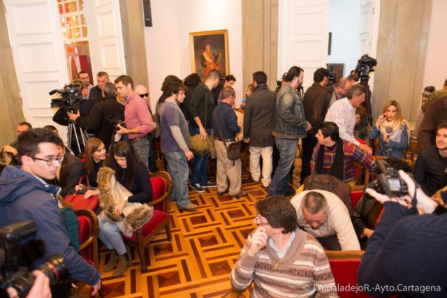 El pleno del Ayuntamiento de Cartagena ha aprobado esta mañana los presupuestos municipales para el año 2016, que ascienden a 188,4 millones de euros. La votación ha contado con los votos favorables de PSOE, MC y Cartagena Sí Se Puede (CTSSP), la abstención de Ciudadanos y el voto en contra del Partido Popular.Según ha señalado la concejala de Hacienda, Isabel García, se trata de unos presupuestos transparentes y participativos en los que han colaborado todas las concejalías y se han mantenido reuniones con unos 200 colectivos para tener en cuenta sus necesidades. La concejala ha señalado que son los mejores presupuestos que se podían hacer con un Ayuntamiento intervenido económicamente hasta el año 2022 y que se prioriza la atención social al tiempo que se apuesta por el mantenimiento de los servicios a los ciudadanos atendiendo las necesidades de barrios y diputaciones.El presupuesto incluye una decena de enmiendas de CTSSP centradas en el gasto social y la atención a barrios y diputaciones por importe de 300 mil euros. DECLARACIÃ"N INSTITUCIONAL DEL ALCALDEEl pleno, que había generado una gran expectación con el salón de plenos lleno de público y periodistas, así como la sala de ceremonias donde de se ha podido seguir mediante un circuito cerrado de televisión, se iniciaba con una declaración institucional del alcalde, José López, en la que hacía un llamamiento a la responsabilidad de todos los miembros de la Corporación municipal, para que su servicio a Cartagena y a sus ciudadanos trascienda incluso al uso personal o partidista de cada uno de nosotros.López explicaba que, si bien es cierto que en momentos puntuales se había alejado de la mesura que se le requiere al presidente de la Corporación, no era menos cierto que la exacerbación de algunos de los hechos y la manipulación de los mismos, habían situado el nombre de Cartagena en lugares en donde los cartageneros bien nacidos no les gusta verla y ha invitado a todos los concejales a ser capaces de avanzar con las miras amplias, con la mirada limpia y sin otro objetivo que el de servir honradamente a la sociedad.