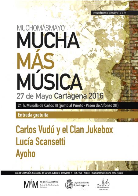 Sigue avanzando el programa de M+M con nuevas y originales propuestas para este viernes, en el que el plato fuerte será el concierto de Mucha Más Música, gratuito y de gran formato, un escaparate en el que mostrar algunas de las propuestas locales y nacionales emergentes del panorama musical, que comenzará a partir de las 21h., estrenado lugar ya que se hará junto a la Muralla de Carlos III en el Paseo Alfonso XII (cerca de Héroes de Cavite).