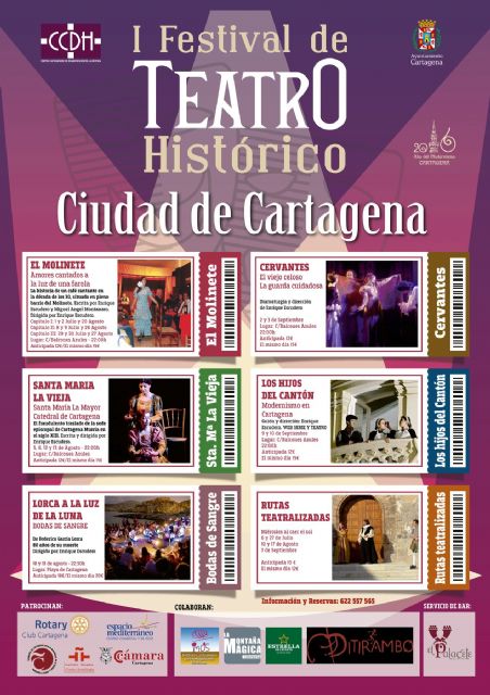 Desde este fin de semana y sumándose a esta serie teatral, tendrá lugar un conjunto de obras durante la época estival en los meses de julio, agosto y septiembre, de la mano de actores y actrices de la ciudad que derrocharán su talento en el Festival de Teatro Histórico de Cartagena, organizado por el Centro Cartagenero de Dramatización de la Historia en colaboración con el Ayuntamiento.
