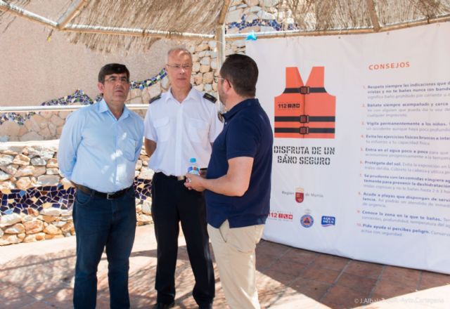 El concejal de Seguridad Ciudadana, Francisco Aznar, acompañado por el director general de Emergencias, Manuel Durán, han sido los encargados de dar a conocer los pormenores de esta iniciativa, que espera repetir los buenos resultados del verano pasado, en que se consiguió bajar en más de la mitad el número de personas fallecidas en la costa de la Región de Murcia, tal y como aseguraba Durán.