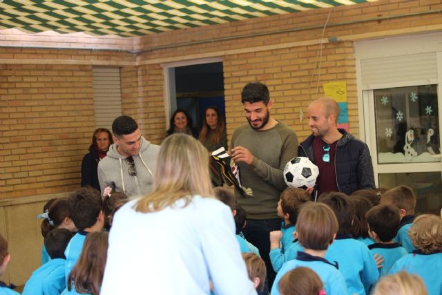 El colegio Adoratrices recibió este jueves, 23 de febrero, la visita de varios jugadores del F.C. Cartagena,los futbolistas Cristo, Moisés y Sergio García, en una actividad enmarcada dentro del Programa ADE de la Concejalía de Deportes del Ayuntamiento de Cartagena, en colaboración con el F.C. Cartagena.