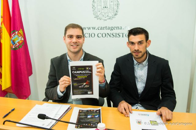 El Concejal de Deportes y Juventud, Ricardo Segado, y Javier Zapata Rivera, responsable de zona de Coerver Coaching, han presentado hoy viernes las jornadas del Campus de Fútbol de Semana Santa, que se realizarán en el Polideportivo Municipal de Pozo Estrecho ‘Rafael García’, entre los días 10 y 13 de abril.