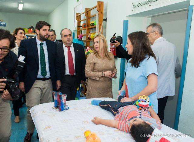 El Centro de Desarrollo Infantil y Atención Temprana (CDIAT) y rehabilitación médico-funcional que tiene la Asociación tutelar de la persona con discapacidad ASTUS en el Hospital de Caridad 'Los Pinos' ha recibido esta mañana la visita del alcalde en funciones, Juan Pedro Torralba, el presidente de la Región, Fernando López Miras y la Consejera de Familia e Igualdad de Oportunidades, Violante Tomás. El presidente de la asociación, Joaquín Barberá, junto a miembros de la misma, ha sido el encargado de mostrarles las instalaciones.