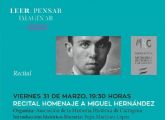 30/03/2017 El ciclo Leer, Pensar, Imaginar homenajea este viernes a Miguel Hernandez con un recital por el 75 aniversario de su muerte