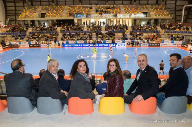 La alcaldesa de Cartagena, Ana Belén Castejón, la concejala de Deportes, Obdulia Gómez, y el director general de Deportes de la Comunidad Autónoma de la Región de Murcia, Alonso Gómez, no quisieron perderse el encuentro y apoyar con su presencia al Plásticos Romero Fútbol Sala Cartagena.