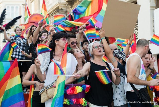 Cientos de cartageneros se manifestaron por las calles del Casco Histórico de Cartagena desde la Plaza de España, el pasado sábado, 30 de junio, con motivo del desfile del Orgullo LGTBIQ, organizado por el Colectivo GALACTYCO con la colaboración del Ayuntamiento de Cartagena.