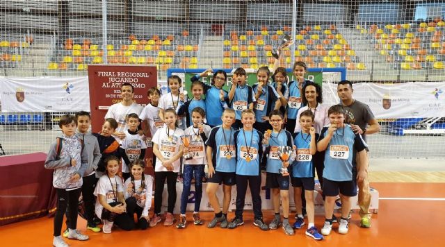 48 equipos de la Región han participado hoy 28 de febrero en el Palacio de Deportes en la Final Regional de “Jugando al Atletismo” en categoría benjamín, que se desarrolla dentro del “Programa de Actividad Física y Deporte en Edad Escolar” organizado por la Dirección General de Deportes de la Región de Murcia, la Concejalía de Deportes del Ayuntamiento de Cartagena y la Federación de Atletismo de la Región de Murcia.