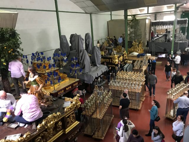 La Cofradía de Nuestro Padre Jesús Resucitado ha adelantado su preparación de tronos y enseres ante la inestabilidad meteorológica y la posibilidad de lluvia, ya que esto suele realizarse cada sábado santo en el interior de la iglesia de Santa María de Gracia.