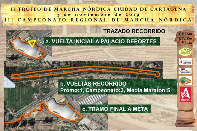 El Palacio de los Deportes acogerá este próximo domingo 3 de noviembre el II Trofeo de Marcha Nórdica Ciudad de Cartagena, siendo el III Campeonato a nivel regional perteneciente a la Liga de Marcha Nórdica FMRM 2019.
