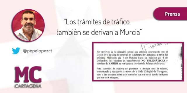 Al hilo de esta situación, el portavoz del Grupo municipal MC, José López, se ha referido al "enésimo agravio a Cartagena" que, en esta ocasión, nos viene "con la Jefatura de Tráfico".