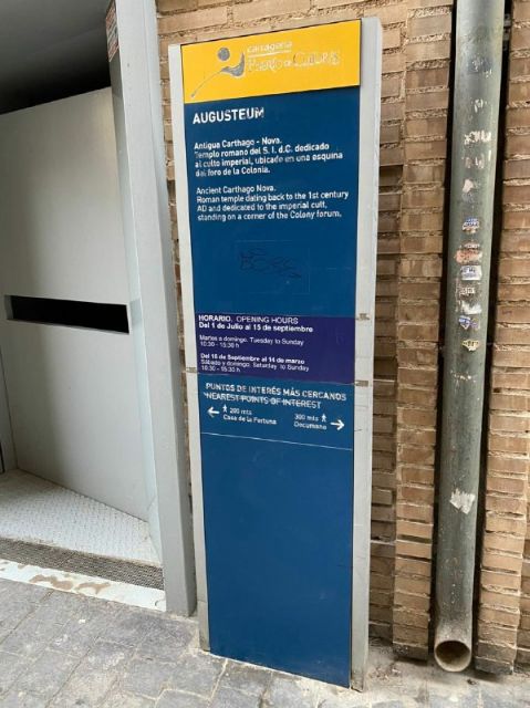 A continuación, ha recordado que "hace dos meses denunciamos el lamentable estado de la cartelería de entrada a la ciudad". Ahondando en esto, ha añadido que "en el próximo pleno lo haremos con los carteles que anuncian los yacimientos y museos de Puertos de Culturas, que reflejan suciedad, decrepitud y, en algunos casos, incluso con riesgo de caída pudiendo causar daños que esperamos no haya que lamentar".