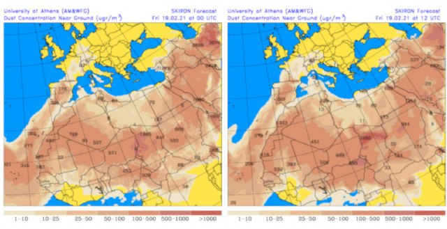 Al parecer, la intrusión de una masa de aire de origen sahariano comenzaría este viernes 19 de marzo, pudiendo provocar un episodio de concentración de partículas en suspensión que, según los modelos consultados, alcanzarán un rango de entre 10 y 160 µg/m3 (microgramos por metro cúbico) para la zona del sureste.