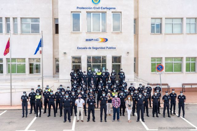 Un grupo de 58 alumnos aspirantes a agentes de Policía Local de municipios de la Región de Murcia, además de representantes de la Academia de Policía de la Región de Murcia y de la Escuela de Formación e Innovación de la Administración Pública (EFIAP), han visitado hoy miércoles las instalaciones de la Escuela de Seguridad Pública del Ayuntamiento de Cartagena (ESPAC), Comisaría de Policía Local y Galería de Tiro del Parque en el parque de Seguridad del Ayuntamiento de Cartagena.
