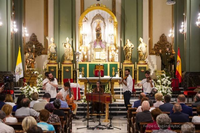 El concierto, que estuvo a cargo de Anacronía, grupo compuesto por el violinista Pablo Albarracín Abellán, premiado en la XXIV edición del concurso Entre Cuerdas y Metales; David Gutiérrez Aguilar (traverso); Luis Manuel Vicente Beltrán (viola); Marc de la Linde Bonal (viola da gamba) y Marina López Manzanera (clave); tuvo lugar a las 20:30 horas y contó con la asistencia de numeroso público, entre los que se encontraban la alcaldesa Noelia Arroyo, el teniente de alcalde, Manuel Padín, el concejal de Cultura, David Martínez Noguera, el edil delegado de Cultura, Carlos Piñana, la consejera de Educación y Cultura, María Isabel Campuzano, el director general de Formación Profesional, Juan García Iborra, la directora del Conservatorio de Música de Cartagena, María José Castaño Murcia, que con el uso de la mascarilla y manteniendo las medidas de seguridad establecidas, disfrutaron del recital denominado ‘¿Haydn Abarrocado?’.