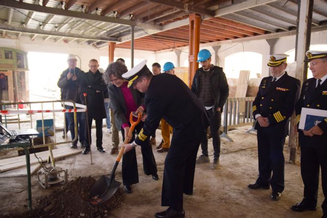 “Los edificios hablan”, ha explicado el arquitecto José Manuel Chacón durante el acto de colocación de la primera piedra de las obras que dirige de rehabilitación del inmueble cedido por la Armada a la UPCT y la UMU, contiguo al CIM. Los trabajos de recalce de la cimentación han permitido constatar, por la inscripción de las vigas ‘AHV 1922’, que el edificio acaba de convertirse en centenario.