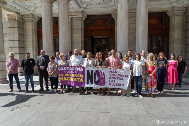 La alcaldesa de Cartagena, Noelia Arroyo, ha convocado a los concejales de la Corporación, trabajadores municipales y ciudadanos a sumarse a guardar un minuto de silencio como muestra de solidaridad con la última víctima por violencia de género registrada en Cieza. La concentración tuvo lugar este lunes, 18 de septiembre, a las 12:30 horas, en la plaza del Ayuntamiento, ante la fachada principal del Palacio Consistorial.